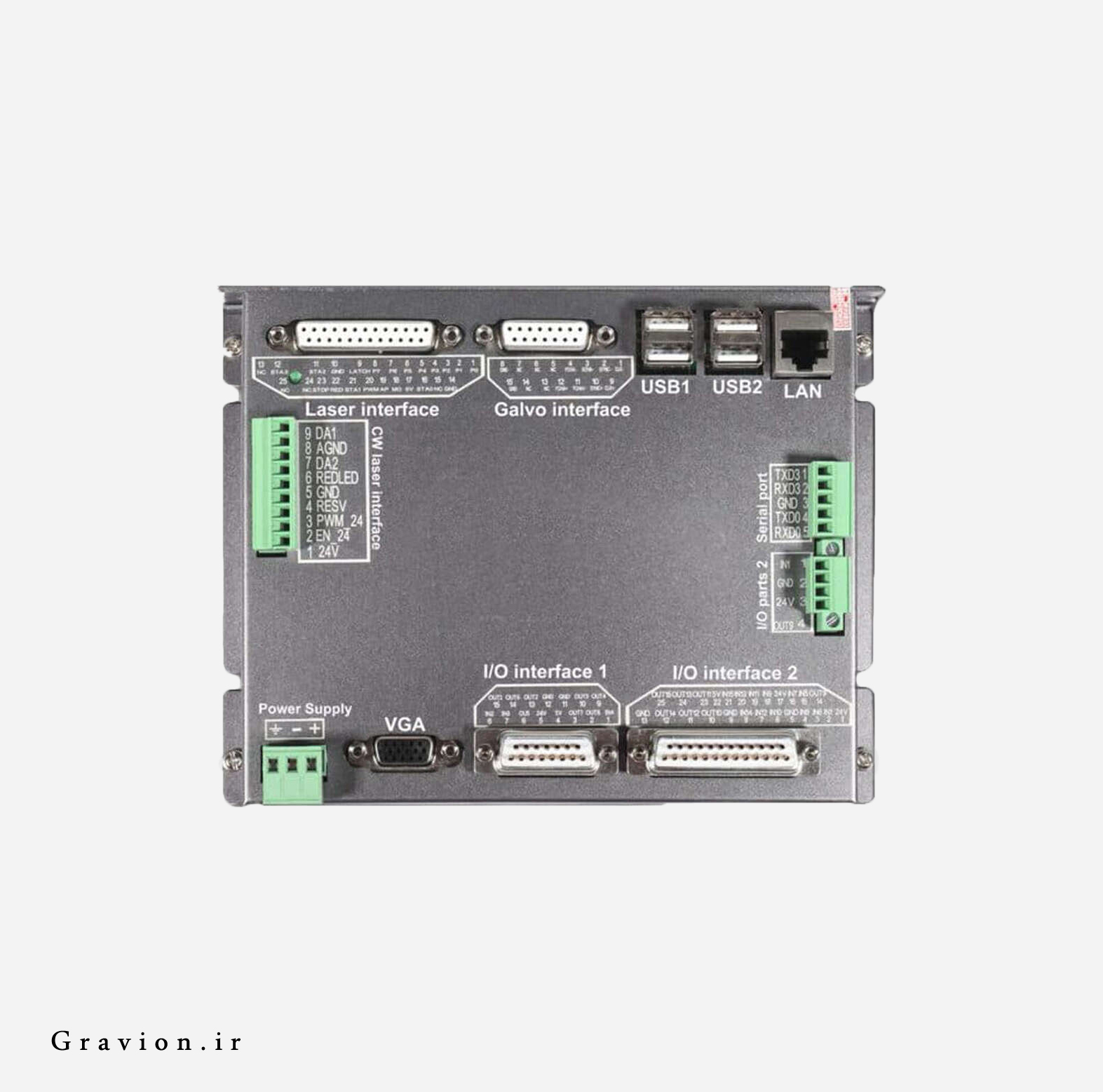 پورتهای استاندارد USB و DB25 اتصال آسان اجزای مختلف مانند هد گالوو و سنسورها را ممکن میسازند.